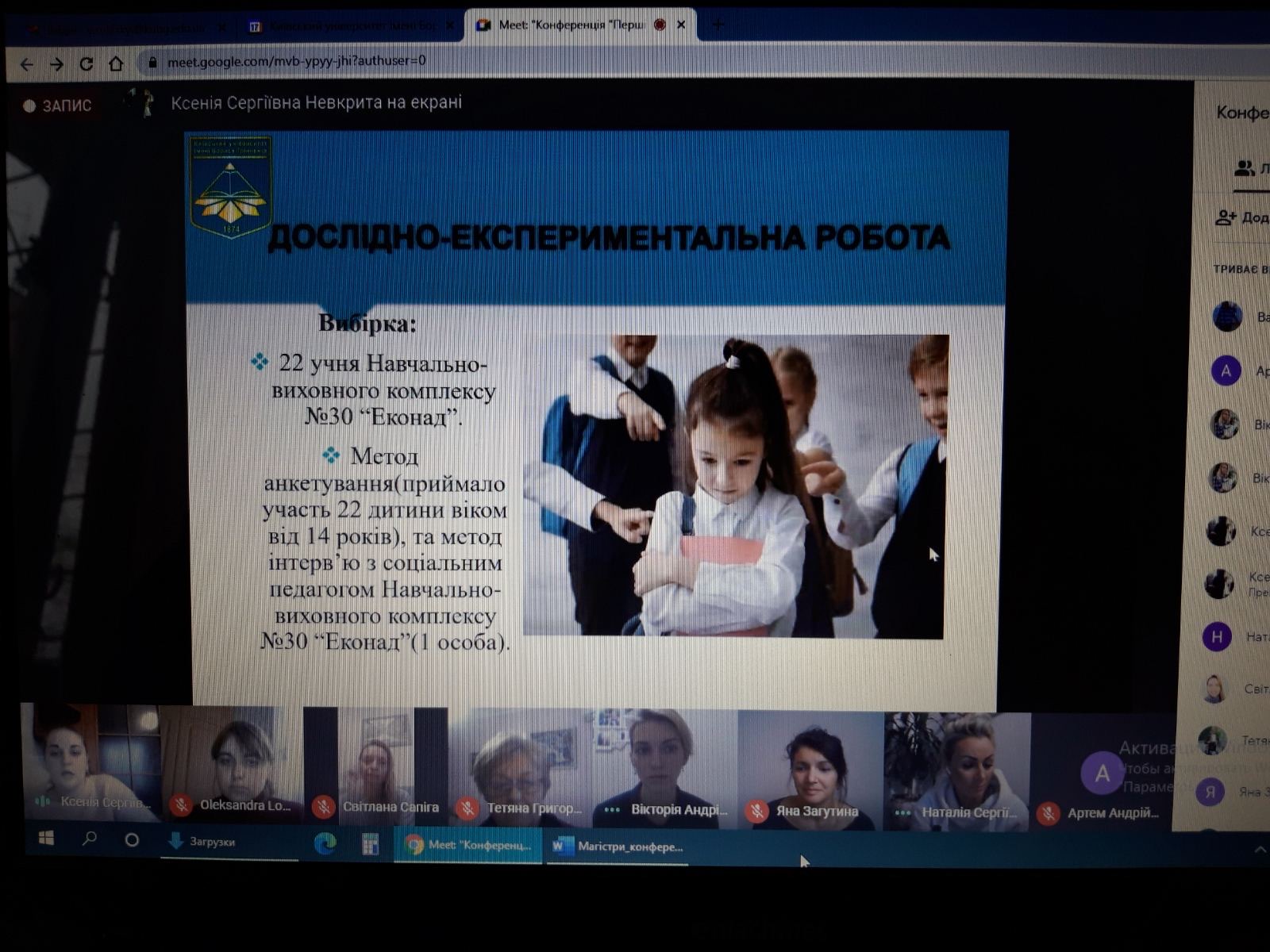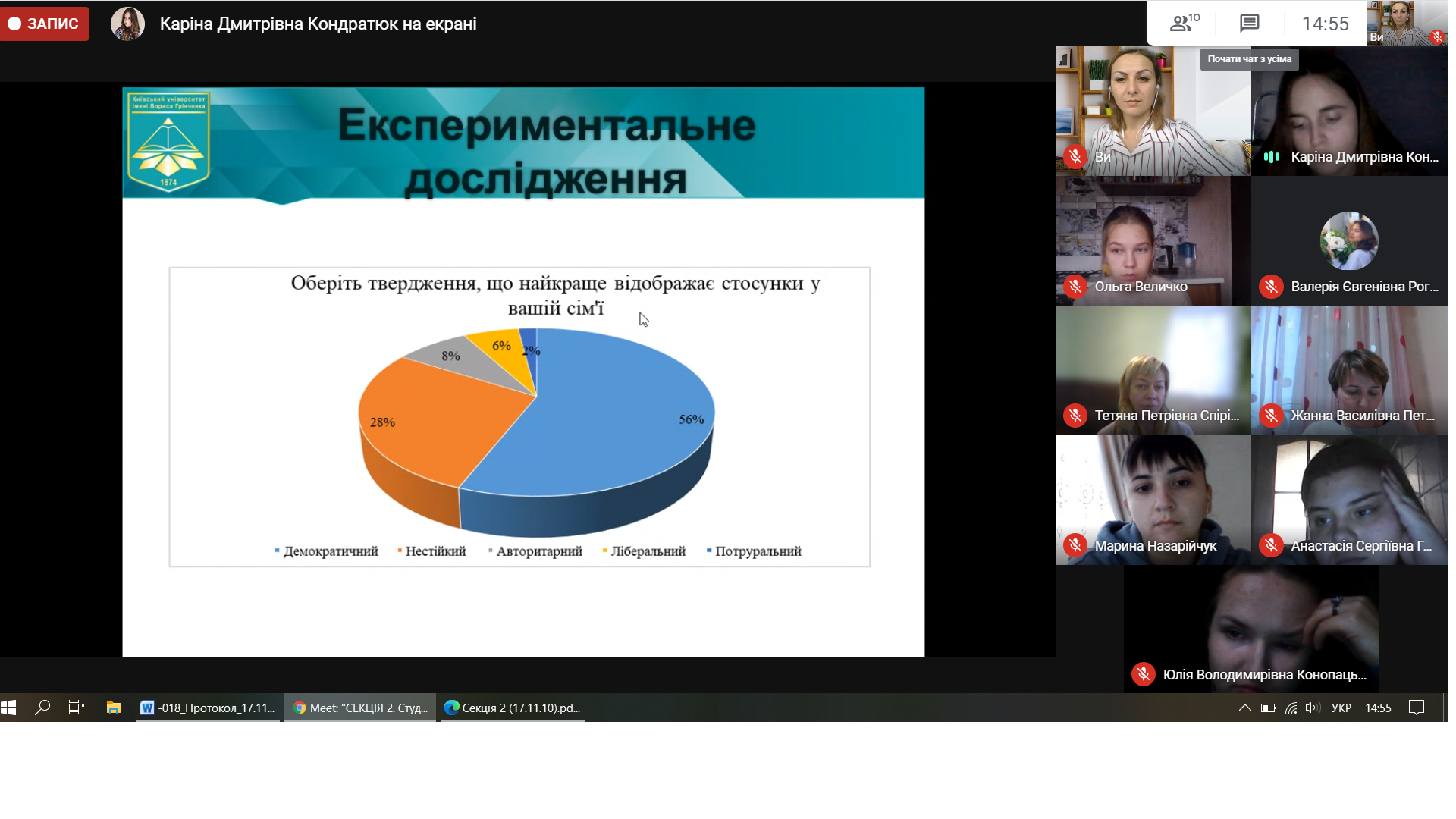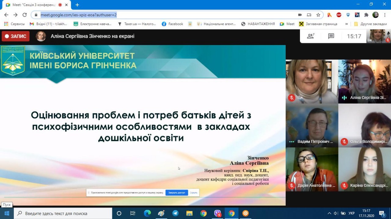 Презентація результатів власних магістерських досліджень студентів 6 курсу спеціальності 231 Соціальна робота на студентській науково-практичній конференції «Перші кроки у науку» (17.11.20)