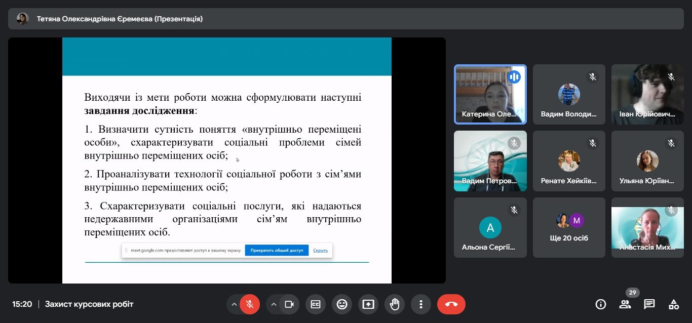 Захист кваліфікаційних (курсових) робіт здобувачів першого (бакалаврського) рівня вищої освіти спеціальності 231 Соціальна робота (10.06.24)