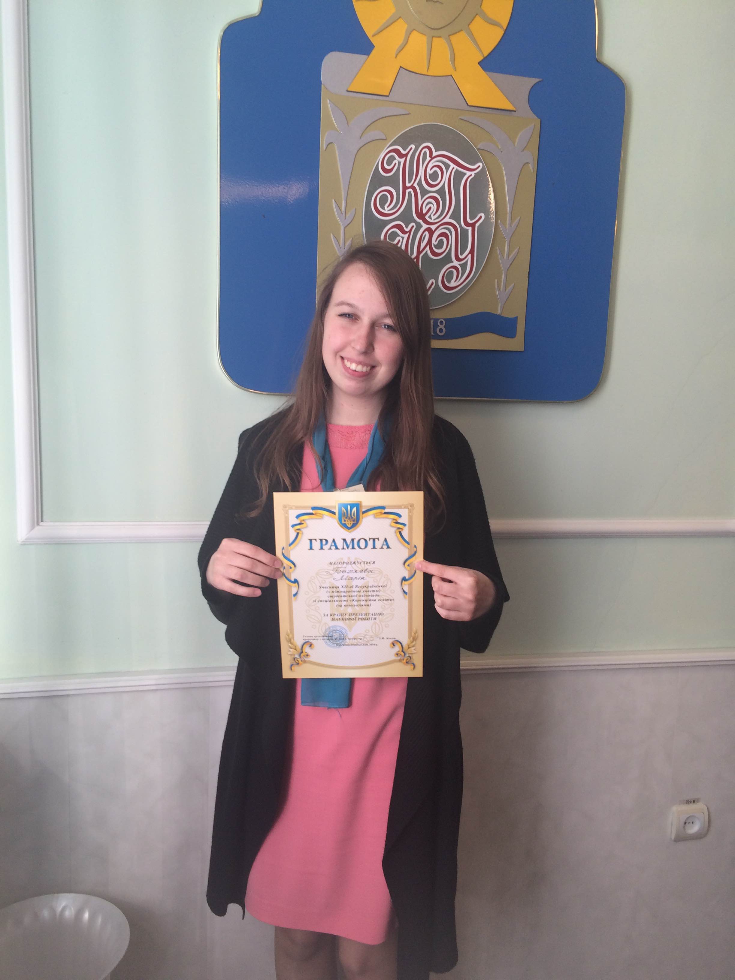 Вітаємо Беляєву Марію та її наукового керівника , бажаємо натхнення в навчанні та науковому пошуці,плідної праці і творчих здобутків, перемог.