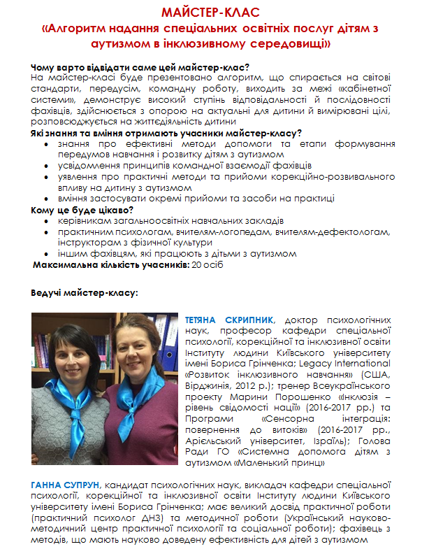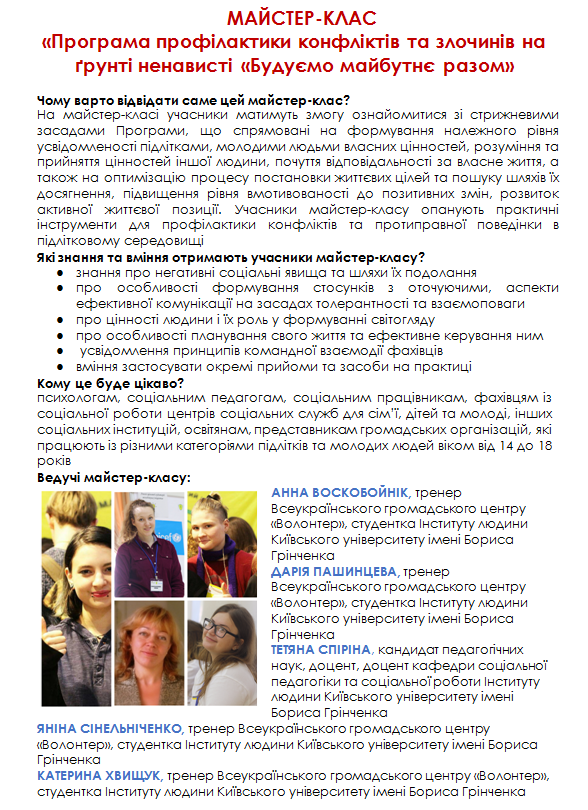 Реєстрація на майстер-класи: