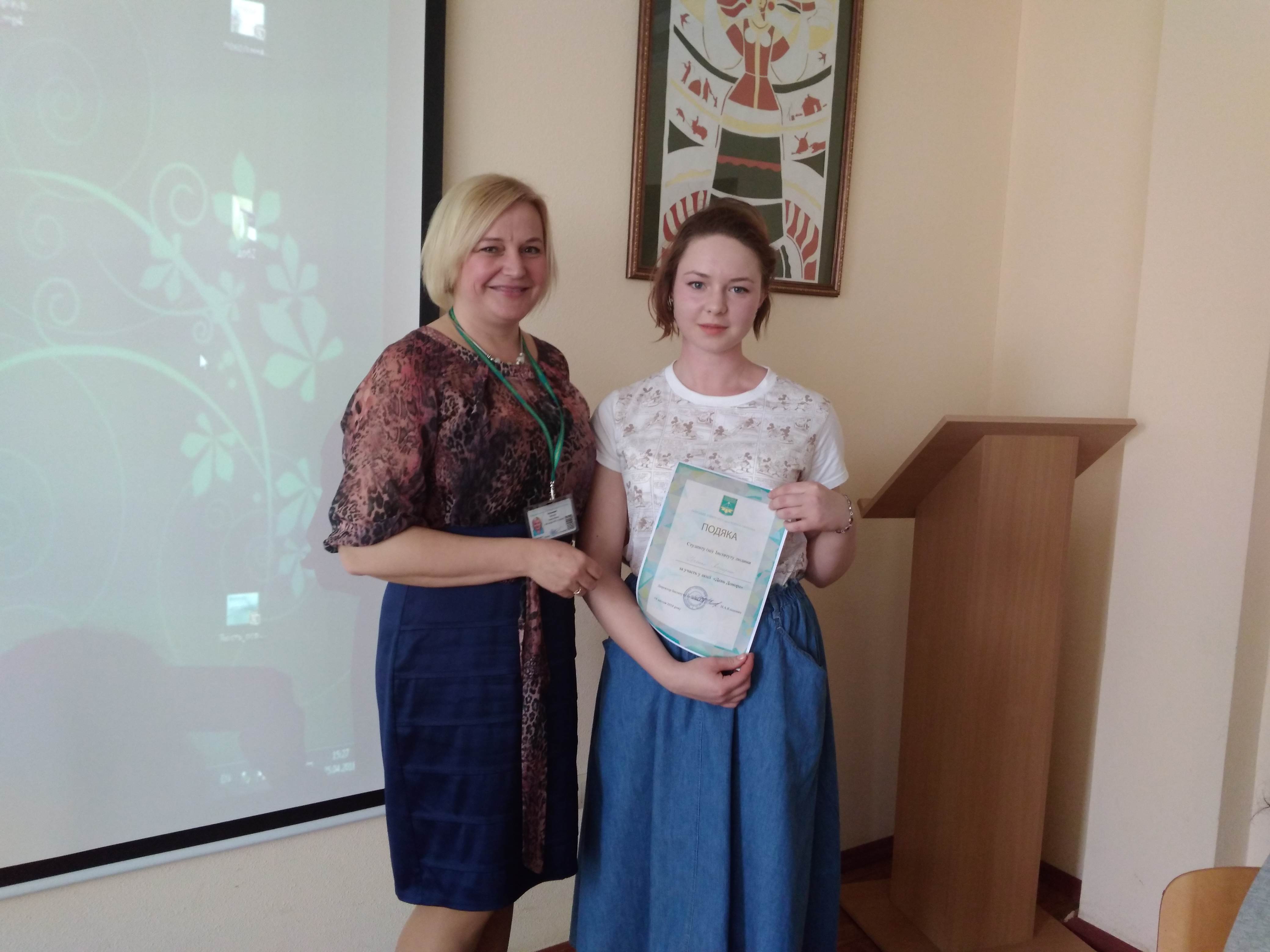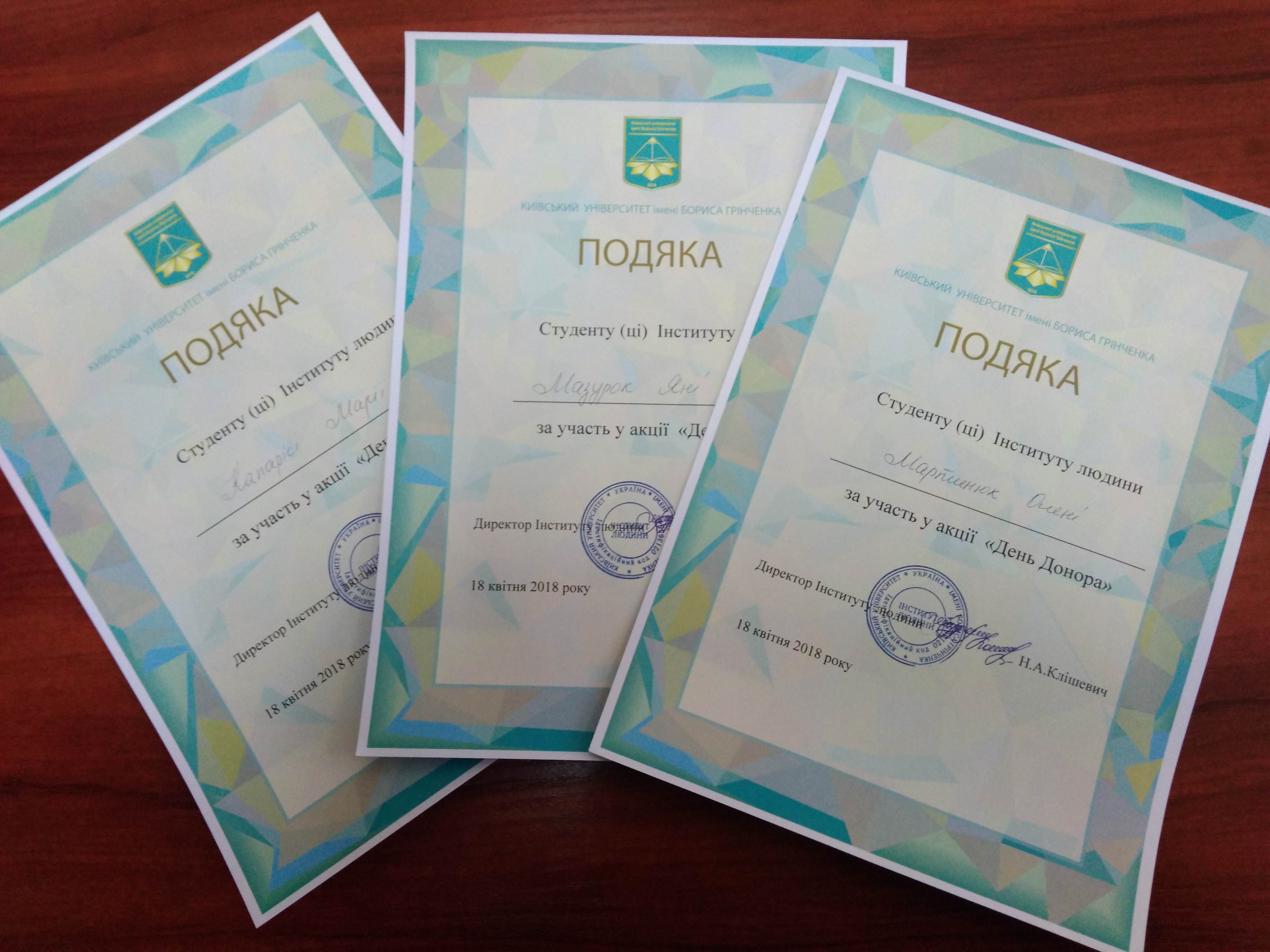 25 квітня 2018 року відбулося засідання Вченої ради Інституту людини Київського університету імені Бориса Грінченка. Голова Вченої ради, директор Інституту людини Клішевич Наталія Анатоліївна розпочала засідання із вручення подяк студентам Інституту людини за участь у акції "День донора", яка відбулась 18 квітня 2018 року. Наталія Анатоліївна Клішевич подякувала студентам, які долучились до акції.