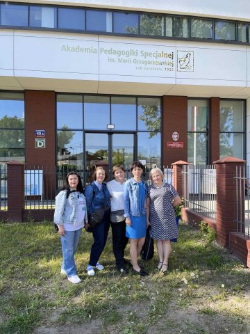 Разом зі здобувачами освіти професорсько-викладацький склад кафедри спеціальної та інклюзивної освіти Факультету психології, соціальної роботи та спеціальної освіти (д.пед.н., доц, завідувач кафедри Олена Мартинчук, д.психол.н., с.н.с., професор кафедри Тетяна Скрипник, к.пед.н., доц., доцент кафедри Роман Павлюк, к.пед.н., доцент кафедри Наталія Лопатинська, к.пед.н., доцент кафедри Галина Васильєва, викладач кафедри Тетяна Кернякевич) проходять програму підвищення кваліфікації в Академії спеціальної педагогіки імені Марії Гжегожевської (м. Варшава, Польща). Під час студентського навчання та проходження програми підвищення кваліфікації відбулися зустрічі із адміністрацією Академії стосовно подальшої співпраці у межах реалізації освітньої програми «Стратегії і практики інклюзивного навчання», академічних обмінів здобувачів освіти та викладачів та участі у реалізації спільних проєктів у межах програм Еразмус+.