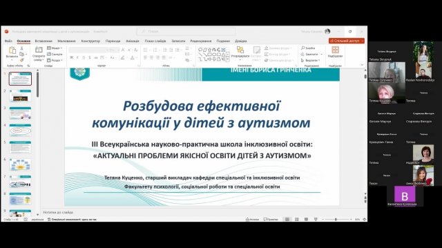 В останній день роботи школи старший викладач кафедри спеціальної та інклюзивної освіти Факультету психології, соціальної роботи та спеціальної освіти Тетяна Куценко провела вебінар «Розбудова ефективної комунікації у дітей з аутизмом». На якому розглядали особливості комунікації щодо дітей з розладами аутистичного спектра та обговорювали механізми взаєморозуміння з дитиною з РАС.