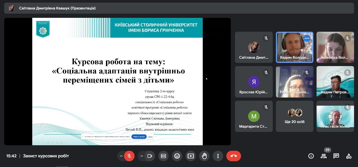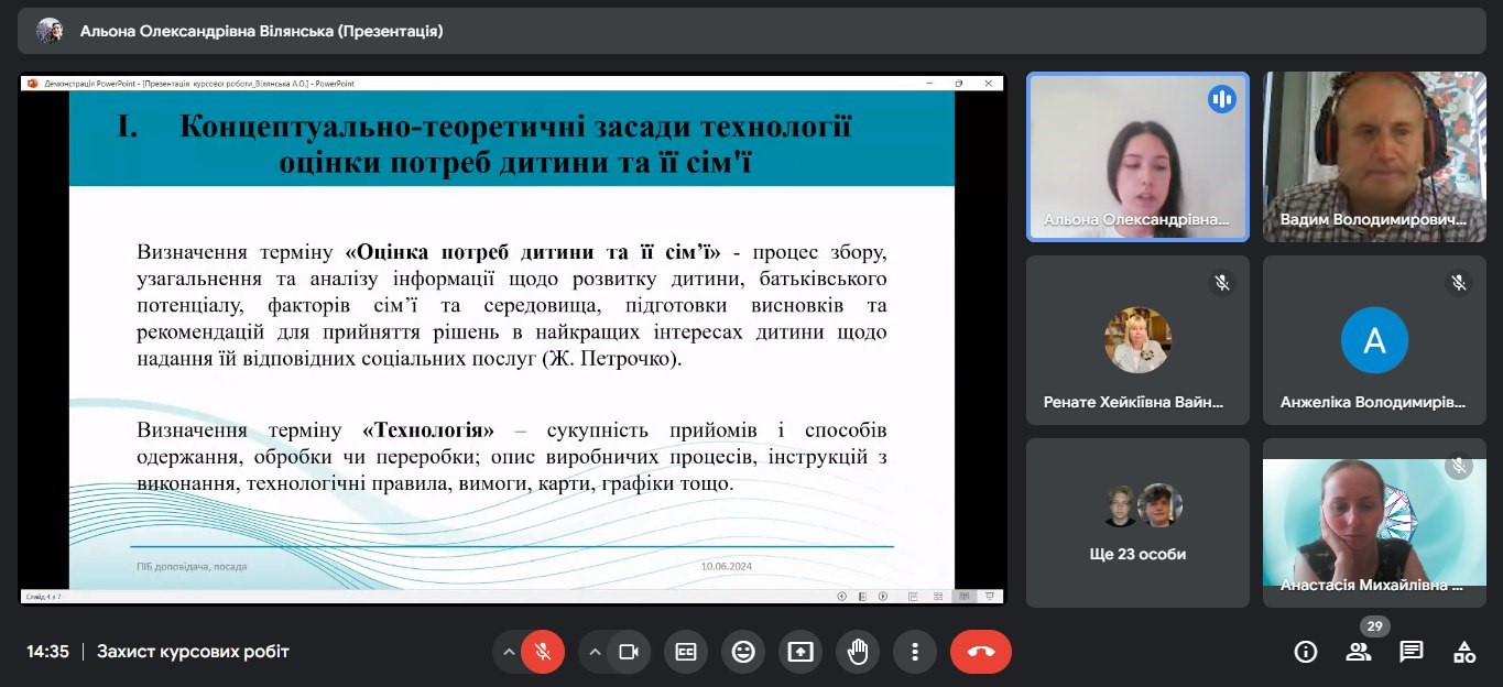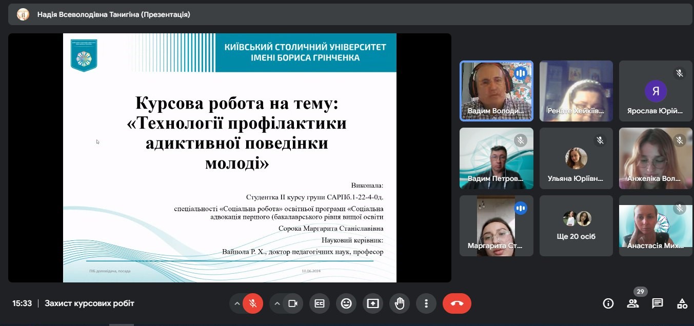 Захист кваліфікаційних (курсових) робіт здобувачів першого (бакалаврського) рівня вищої освіти спеціальності 231 Соціальна робота (10.06.24)