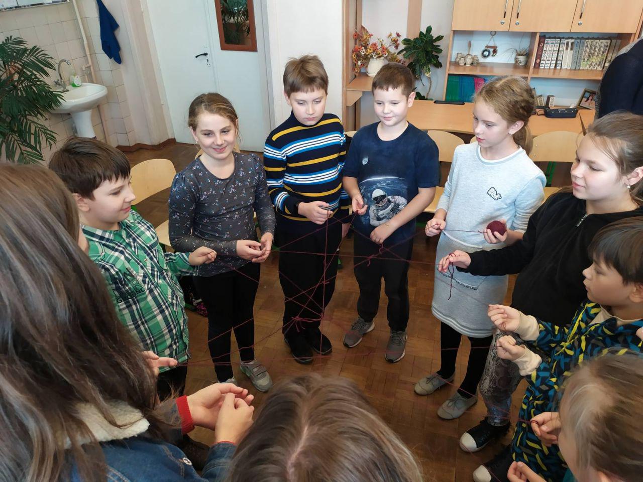 Мета заняття полягала у формуванні сприятливого психологічного клімату в класі, покращенні взаємодії між учнями та розвитку умінь працювати в команді. До програми заняття було включено наступні вправи: привітання, «Кольорова павутинка», «Поняття», «Дерево» та заключну об’єднуючу частину.
