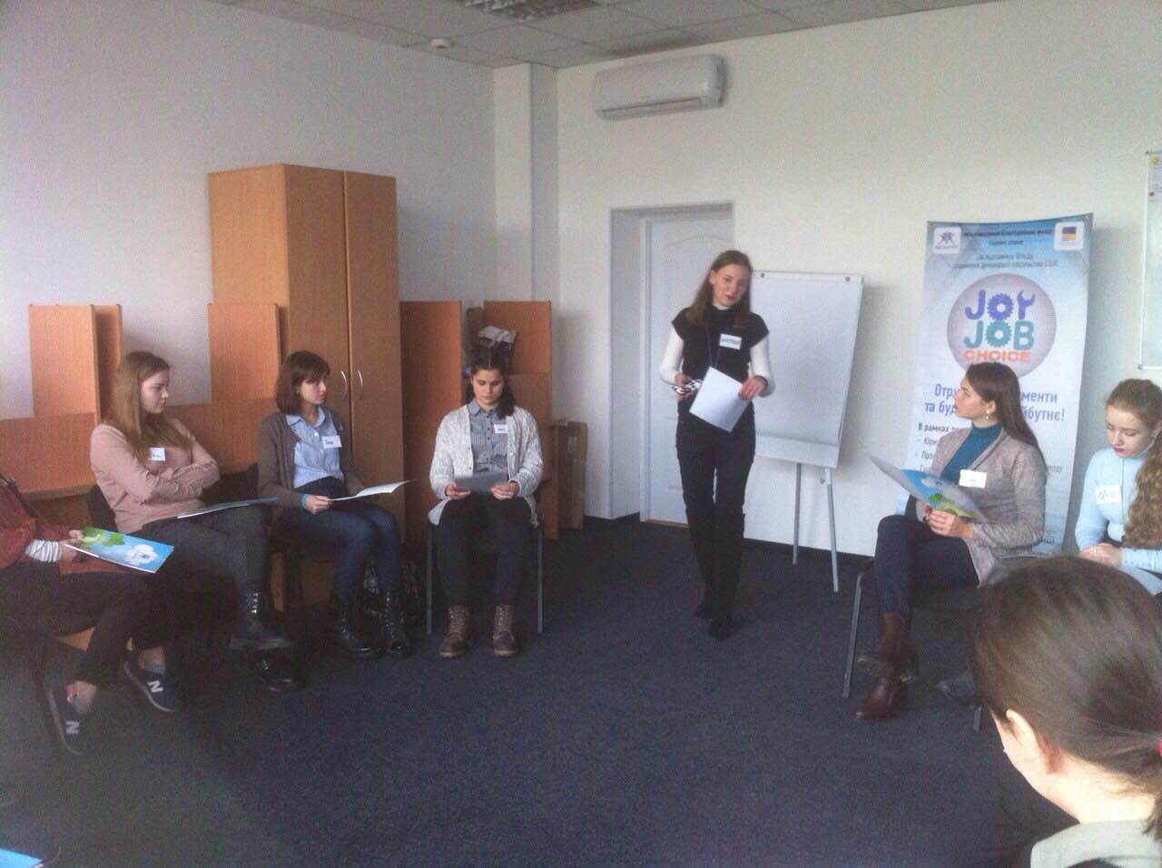 Студенти І курсу спеціальності «Соціальна педагогіка» денної форми навчання під керівництвом викладача кафедри соціальної педагогіки та соціальної роботи Фірсової Ірини Миколаївни взяли активну участь у роботі профорієнтаційної майстерні «Joy. Job. Choice», проведеної в рамках програми «Мій вибір – мій успіх!» від Міжнародного благодійного фонду Гарних справ. Метою даного заходу було допомогти молоді знайти своє призначення та надати знання, необхідні для успішної побудови свого професійного майбутнього.