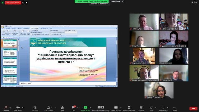 Участь у заході взяли студенти, їхні наукові керівники, гарант освітньої програми – Тетяна ЛЯХ, кандидат педагогічних наук, доцент, доцент кафедри соціальної педагогіки та соціальної роботи Факультету психології, соціальної роботи та спеціальної освіти Київського університету імені Бориса Грінченка, яка звернула увагу здобувачів на графік роботи над магістерською роботою та наголосила на необхідності його кореляції з індивідуальним планом роботи над магістерським дослідженням. Здобувачі вищої освіти звітували про виконання індивідуального плану роботи над магістерським дослідження та презентували інструментарій дослідження. Також звітувались про наявність наукової фахової статті та участь у конференції.