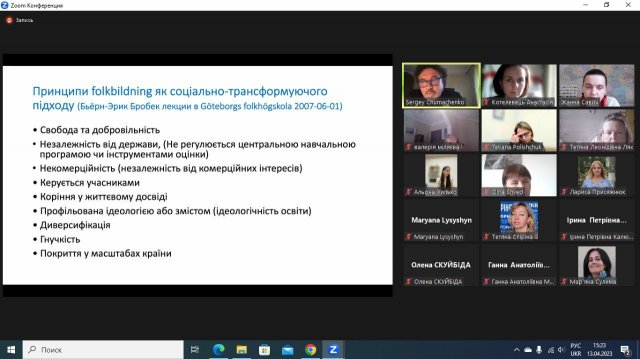 13 квітня 2023 року Тетяна Лях, завідувач кафедри соціальної педагогіки та соціальної роботи, гарант ОПП Моніторинг і оцінка соціальних програм, Тетяна Спіріна, доцент кафедри й гарант магістерської ОПП Соціальна педагогіка, Ольга Швед, доцент кафедри, та Анастасія Котелевець, викладач кафедри, здобувач третього (освітньо-наукового) рівня вищої освіти, взяли участь у «Зустрічі з лідером», організованій ННЦ розвитку персоналу та лідерства, а саме: у вебінарі від Сергія Чумаченка «Більдунг та нордичний фольк-більдунг. Введення в нордичну традицію неформальної освіти дорослих».