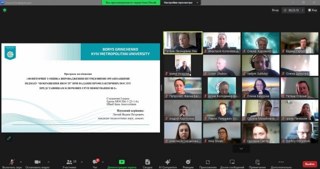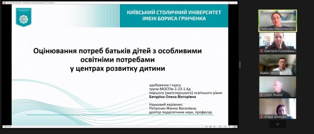Здобувачі вищої освіти звітували про виконання індивідуального плану роботи над магістерським дослідження та презентували інструментарій дослідження. Також звітувались про наявність наукової фахової статті та участь у конференції.