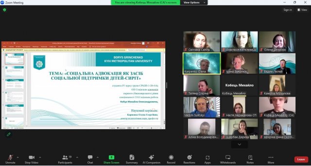 Участь у заході взяли здобувачі, їхні наукові керівники. На початку зустрічі з вітальним словом звернулася Тетяна ЛЯХ, завідувач кафедри соціальної педагогіки та соціальної роботи, гарант освітньо-професійної програми «Моніторинг і оцінка соціальних програм», кандидат педагогічних наук, професор, професор кафедри соціальної педагогіки та соціальної роботи Факультету психології, соціальної роботи та спеціальної освіти Київського столичного університету імені Бориса Грінченка, яка звернула увагу здобувачів на графік роботи над бакалаврською роботою.