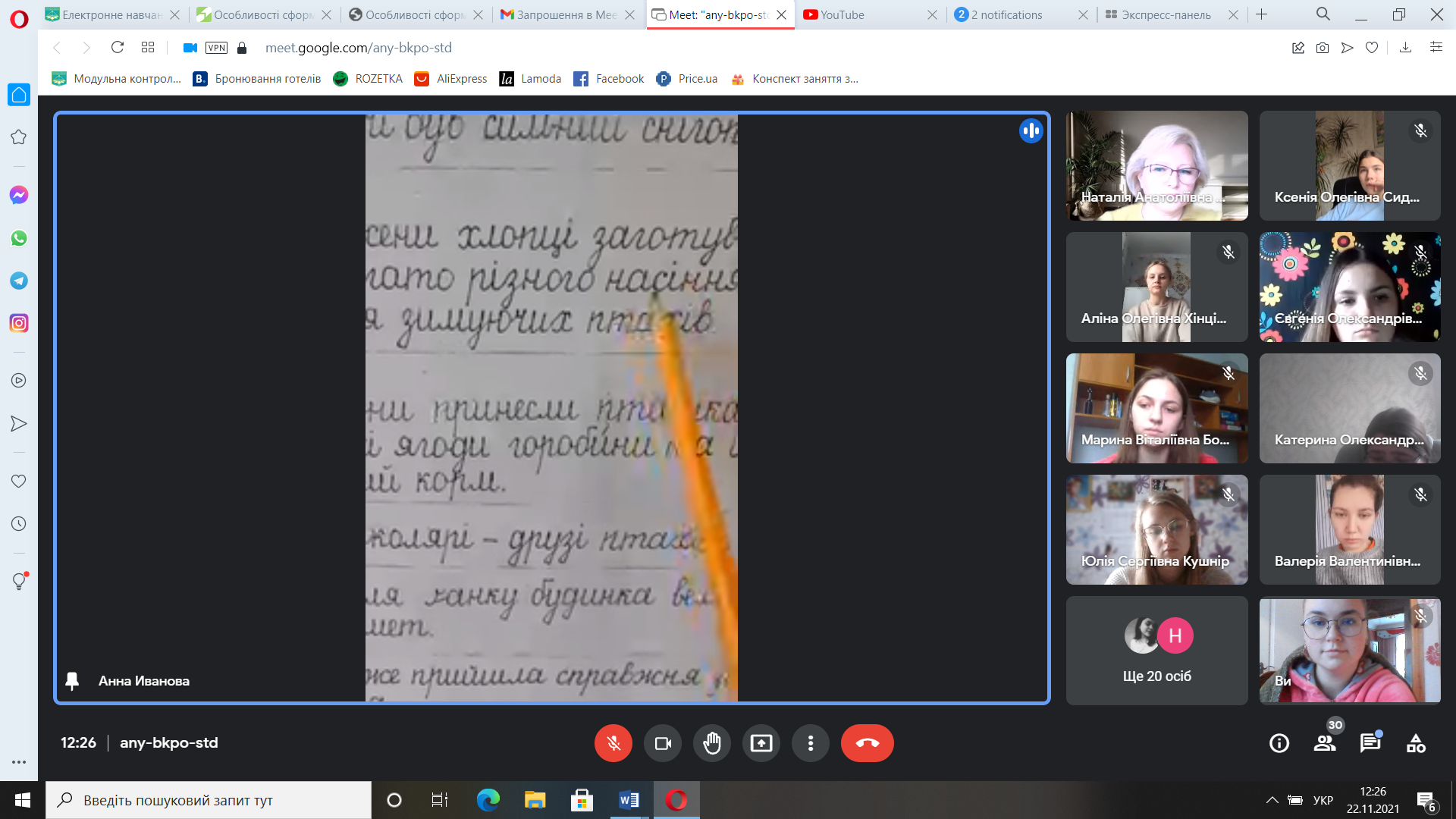 Щиро дякуємо пані Івановій Г.А. та здобувачам освіти ІІІ курсу за активну участь у навчальній відео он-лайн лекції та продуктивну діяльність.