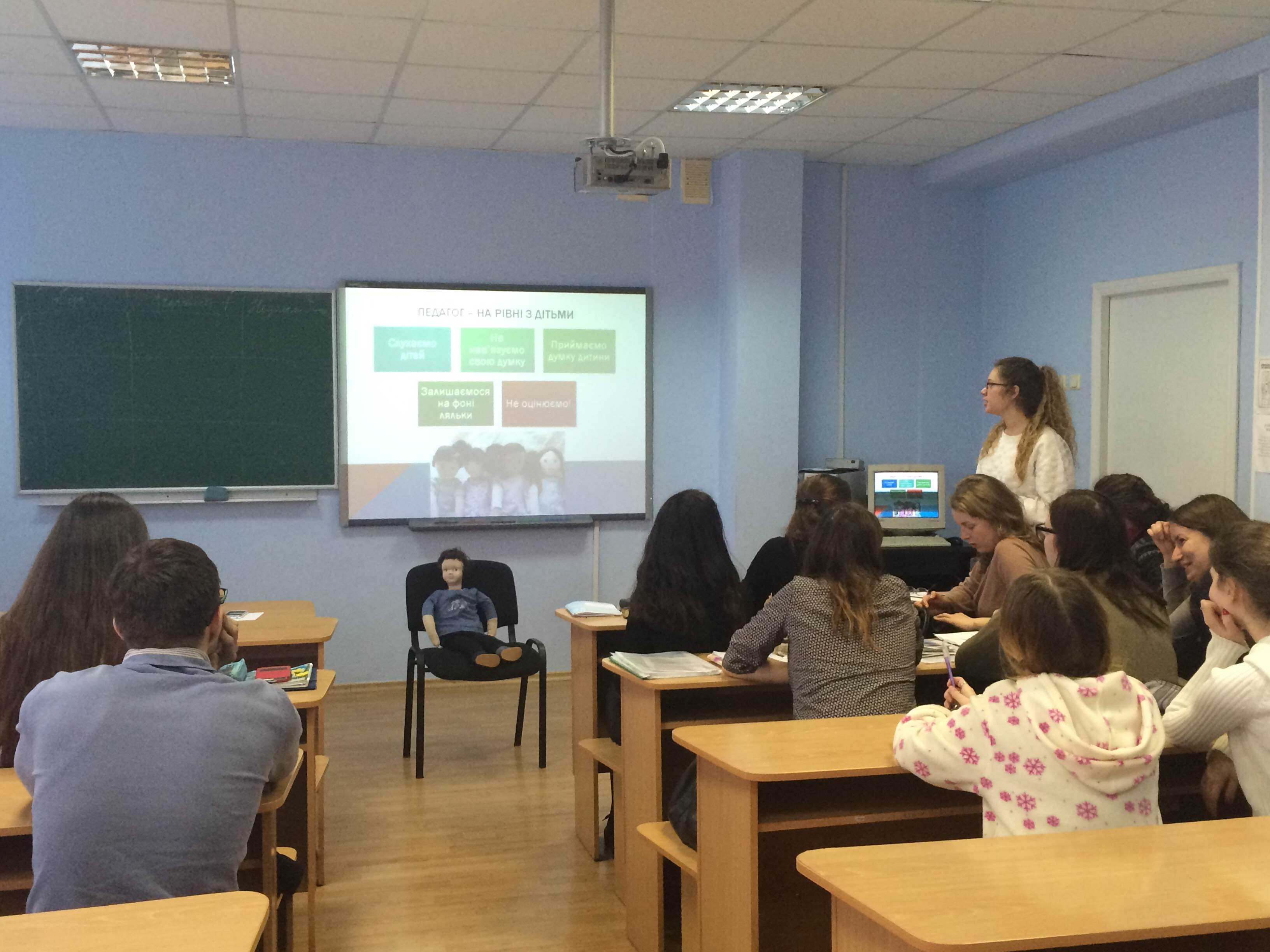 24 березня Воронько Валерія, студентка 4 курсу напряму підготовки "Корекційна освіта (логопедія)", провела тренінг "Лялька як персона: сучасний підхід до особистісного розвитку дітей з особливими освітніми потребами" для майбутніх соціальних педагогів, студентів 3 курсу.