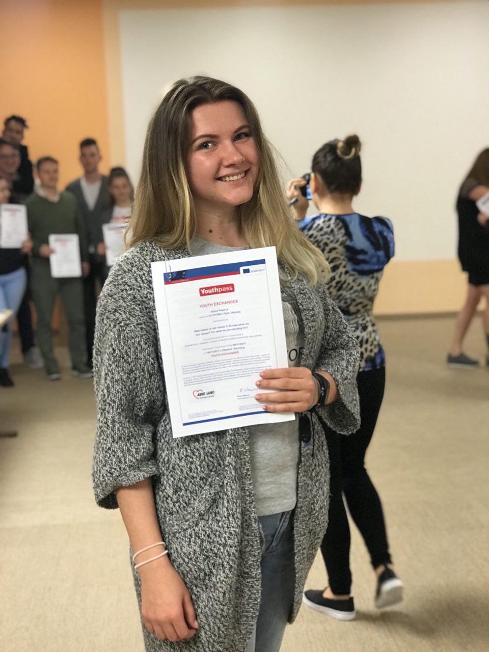 Другий рік поспіль Попова Альона Олексіївна, виграючи конкурс, стає учасницею проекту «Нові та старі цінності в Європі – які з них наші цінності? Які цінності ми відстоюємо?», що реалізовується за підтримки Європейської програми Еразмус+. У межах проекту організовано двотижневий навчальний курс для молоді з шести країн: Німеччини, Румунії, Білорусі, Росії, Угорщини та України.